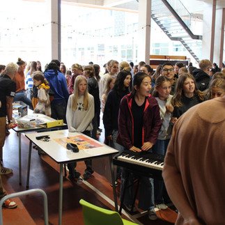 Tijdens de middagactiviteitenmarkt ontdekten de leerlingen de verschillende bezigheden die bij ons kunnen worden gedaan tijdens de middagpauze. Muziek, toneel, sport of liever tot rust komen met lezen in de bib? Bij ons kan het allemaal!